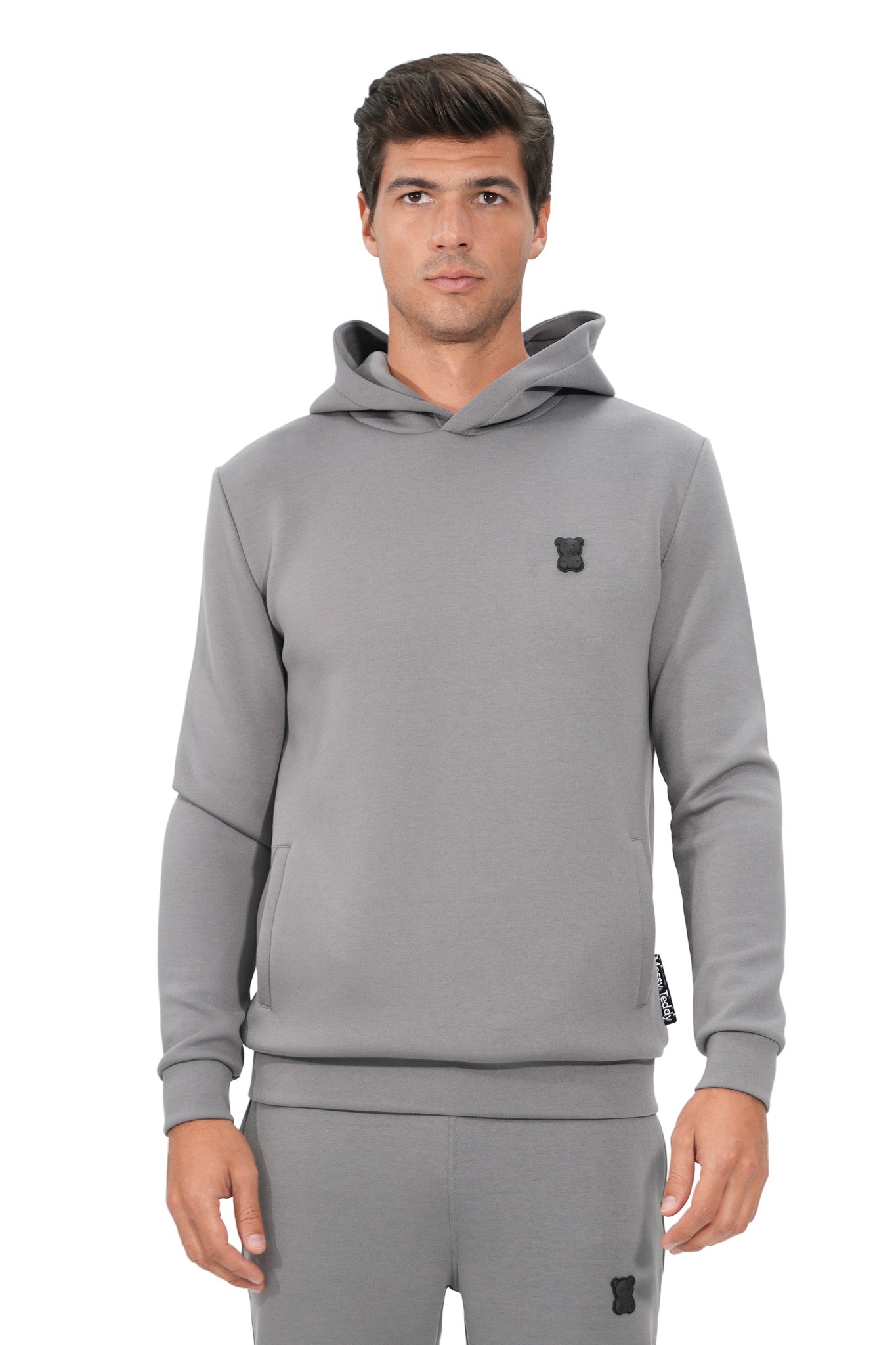 Funnel Neck Hood 4 Way Stretch Side Pockets Rubber Logo Side Logo Tag Soft touch Breathable Durable Tape inside collar Machine Wash Inside Out Model is wearing a size M Color: GREY Material: 75% Polyester 19% Rayon 6% SpandexSHIPPING & RETURN